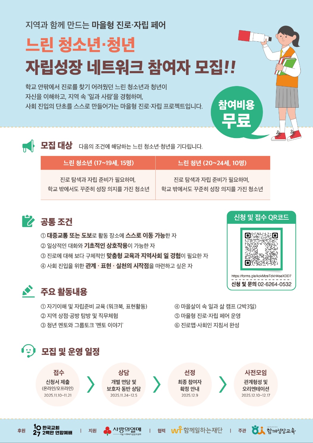 1. 개인정보의 이용 목적 : 학교 밖 청소년 지원 서비스 안내, 사업실적보고, 만족도조사