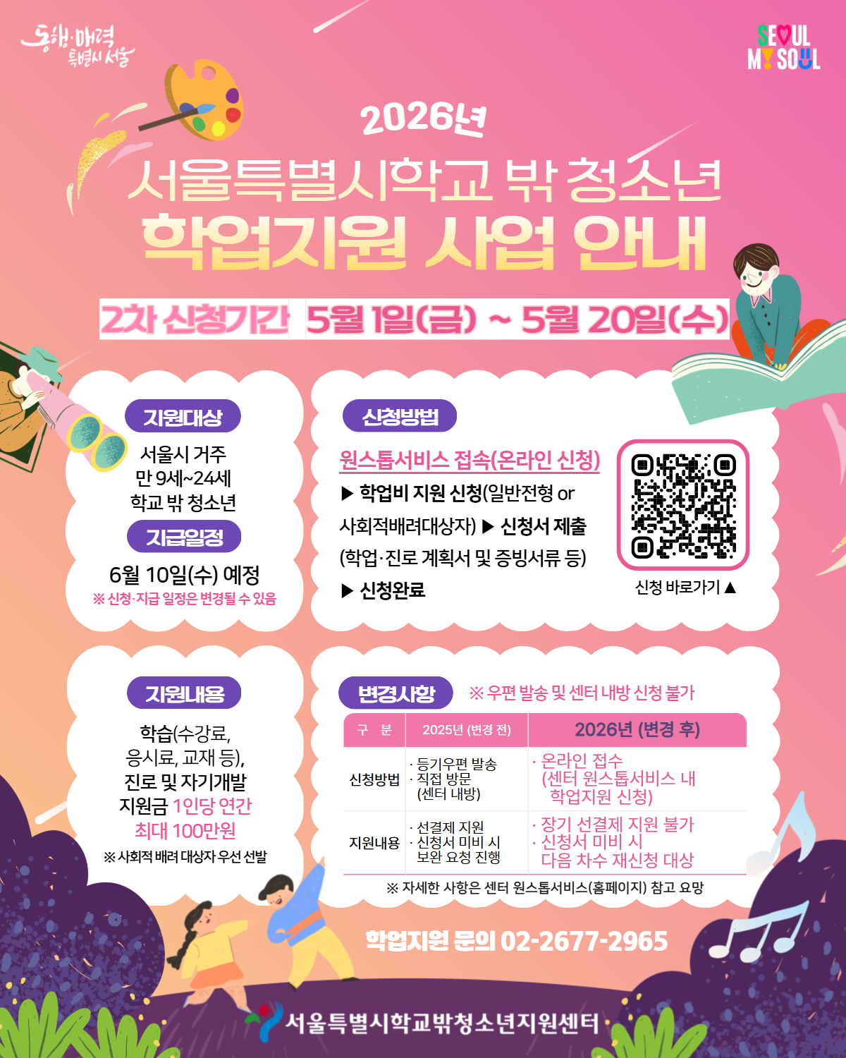 2026년 학교 밖 청소년 수업료 지원사업(1차) 안내