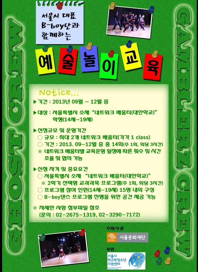 103 [마감][문화협력사업 신청] 찾아가는 ' B-boy' 예술학교 관리자 08-06 568