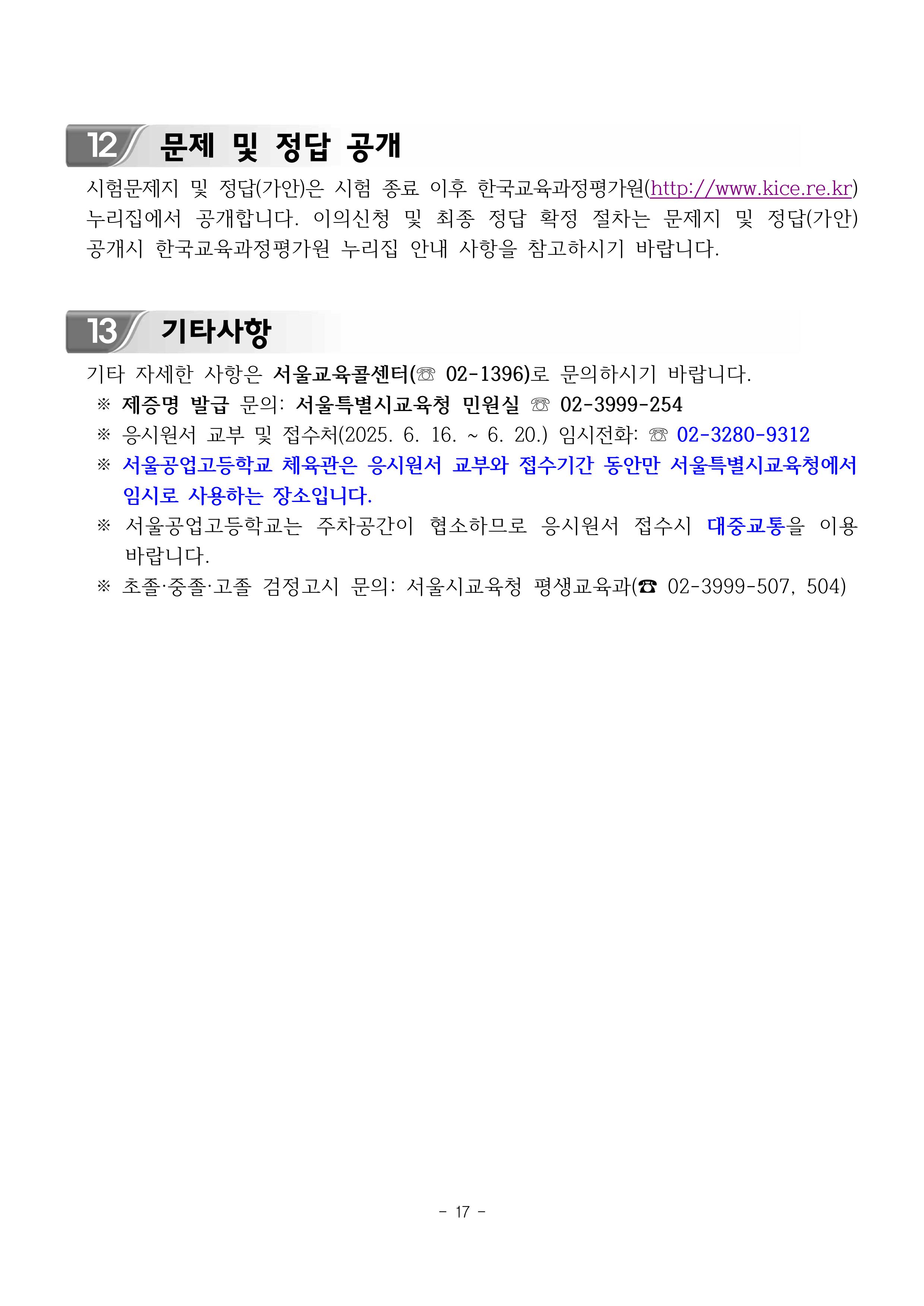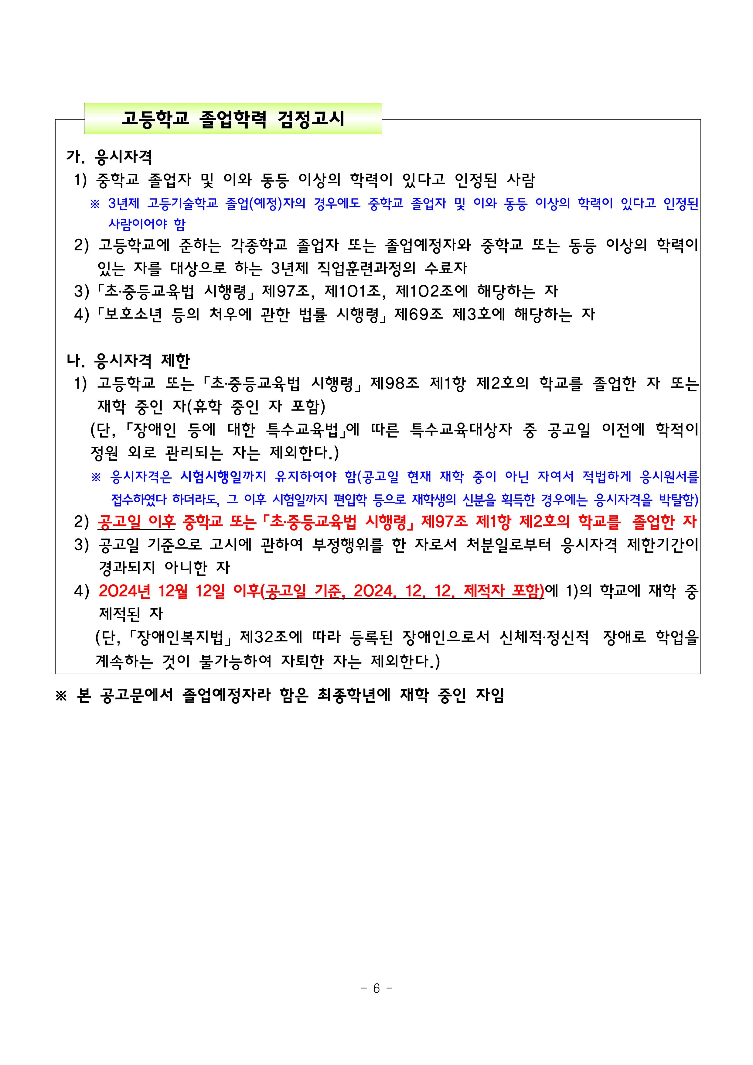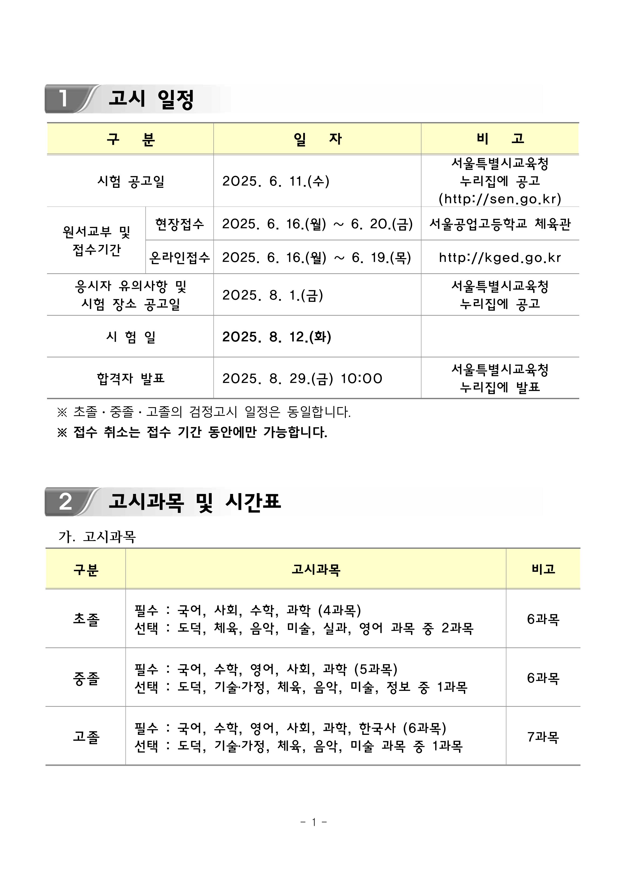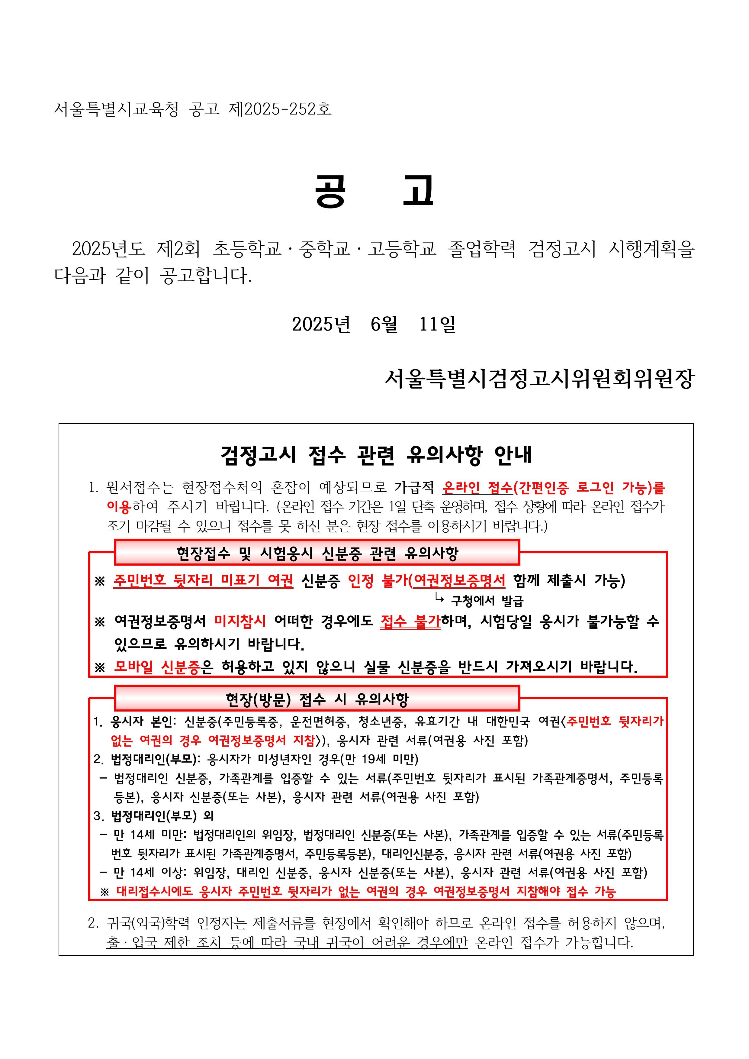 2025년 제2회 초·중·고등학교 졸업학력 검정고시 시행계획 공고