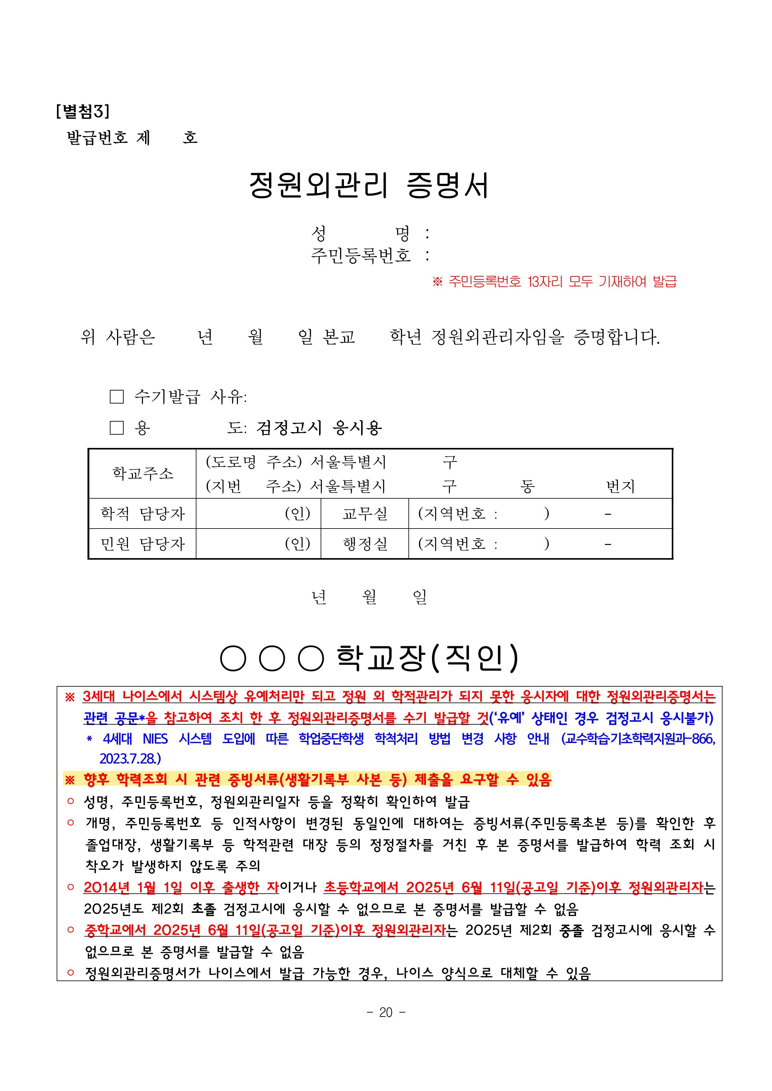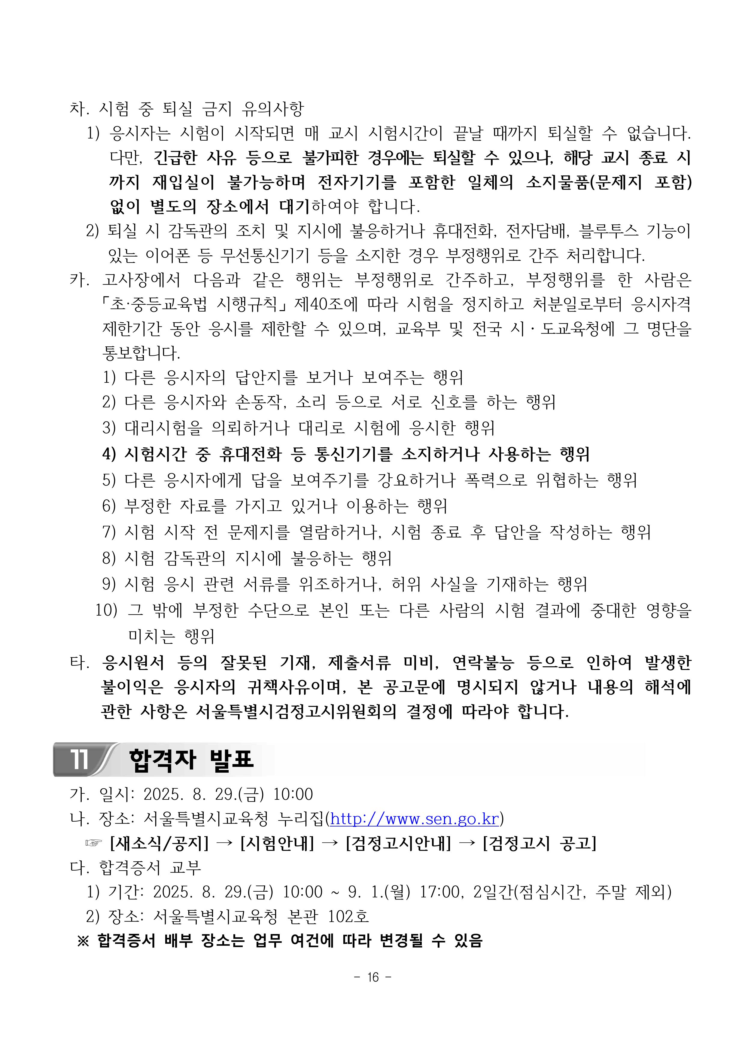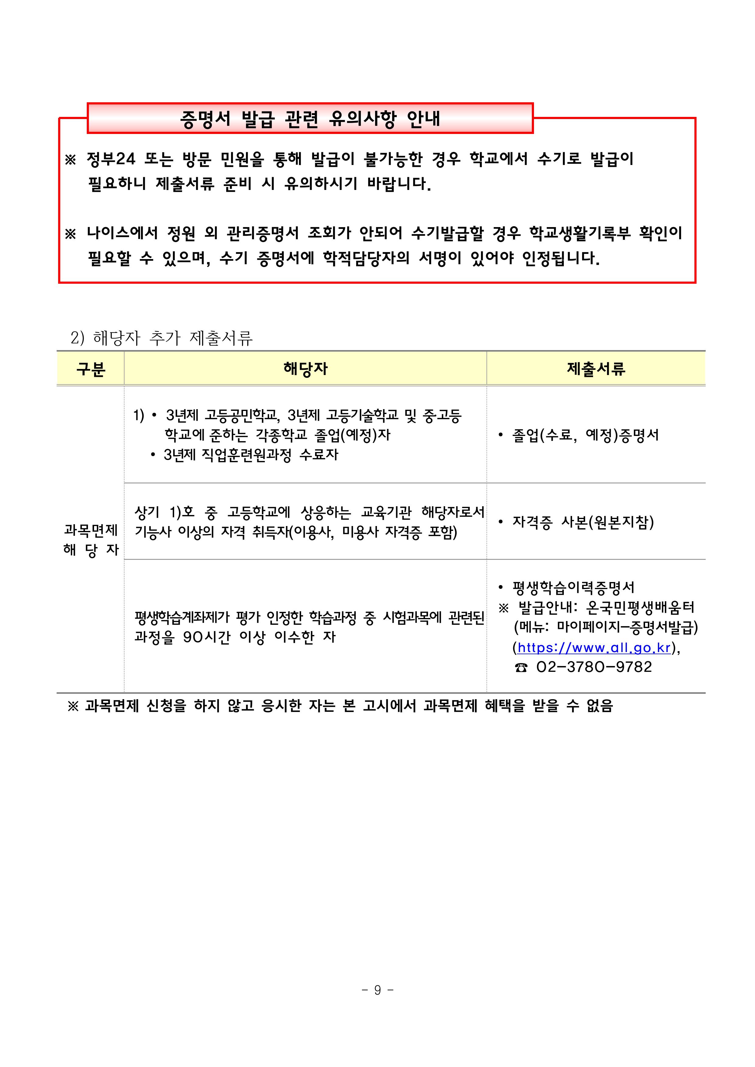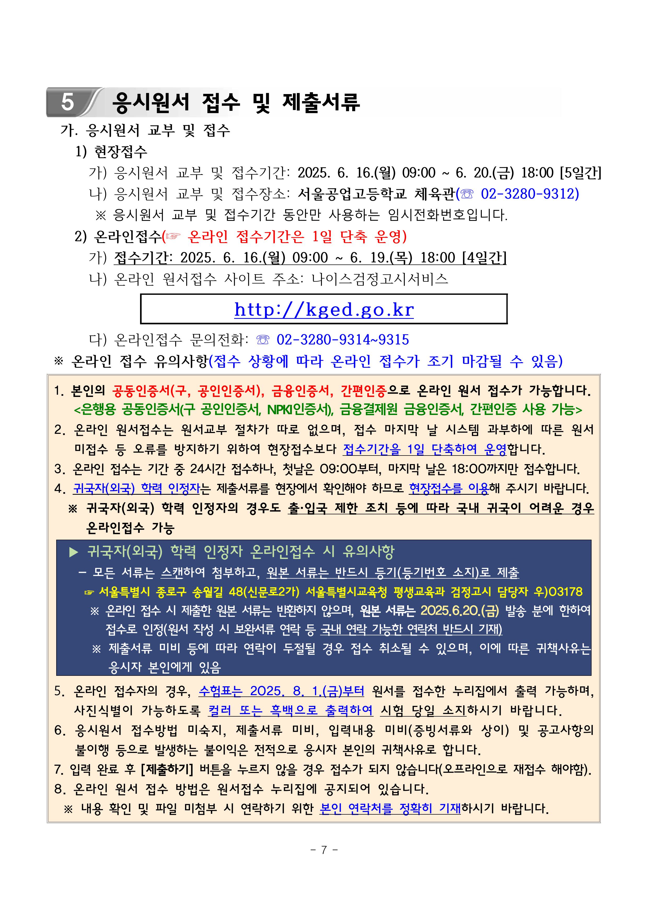 2025년 제2회 초·중·고등학교 졸업학력 검정고시 시행계획 공고