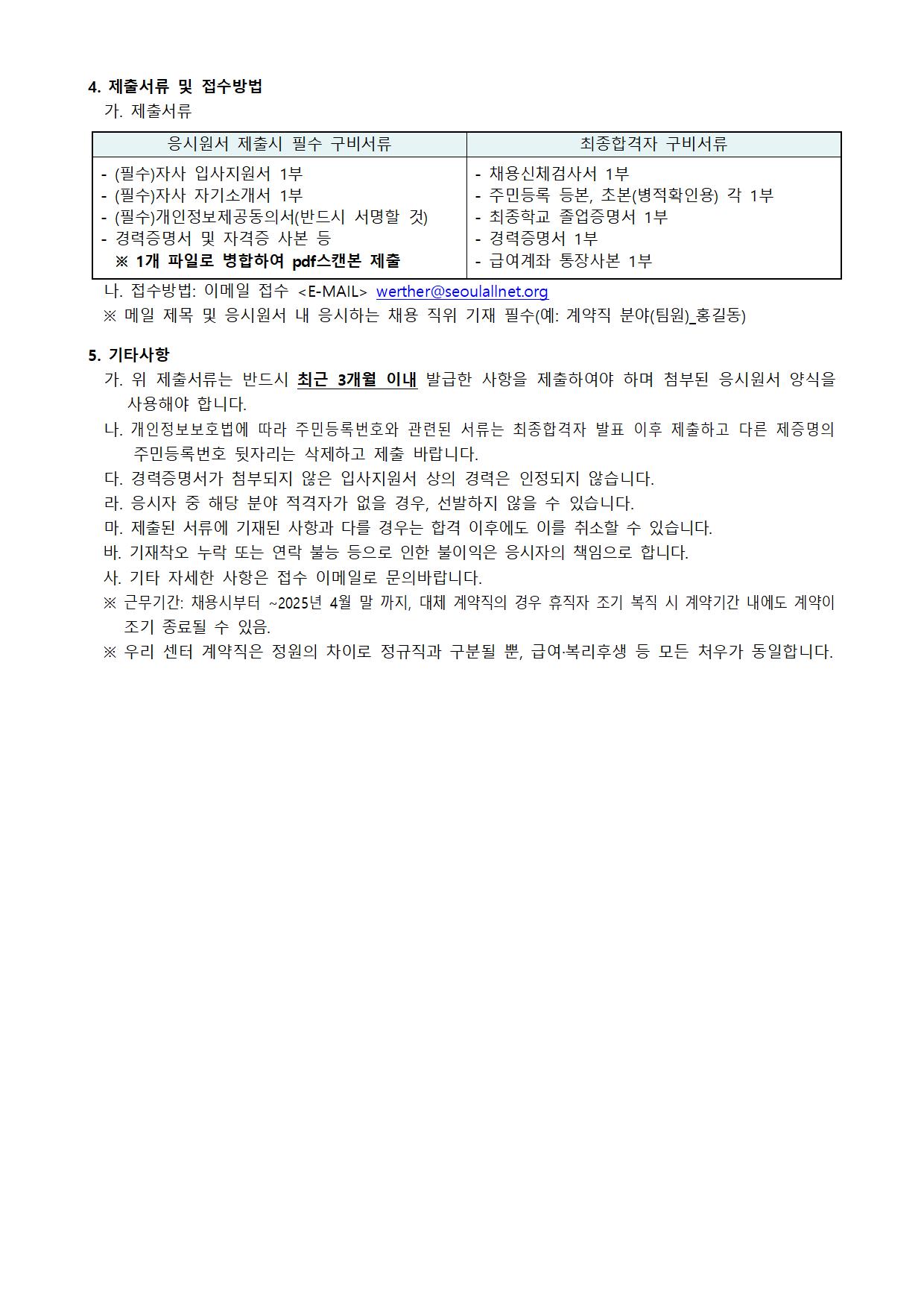2024 서울특별시학교밖청소년지원센터 직원(계약직) 채용 1차 서류 합격자 발표 안내 (2024.8.2. 공고건)