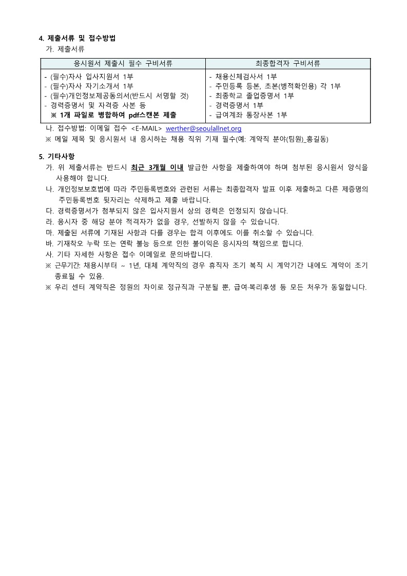 2024 서울특별시학교밖청소년지원센터 직원(계약직) 채용 1차 서류 합격자 발표 안내 (2024.8.2. 공고건)