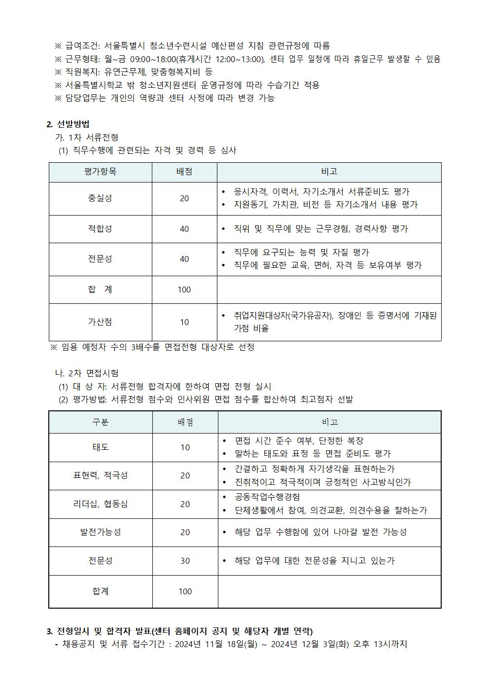 2024 서울특별시학교밖청소년지원센터 직원(계약직) 채용 최종합격자 발표 안내(2024.11.13.면접건)