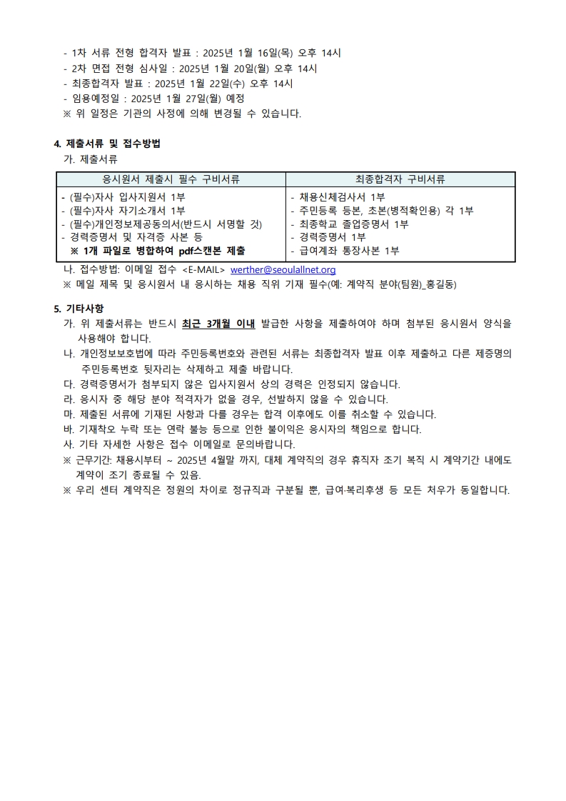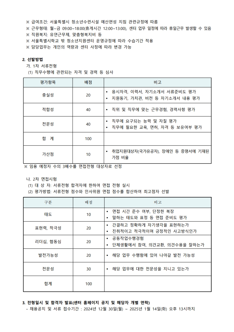 2024년 서울특별시학교밖청소년지원센터 직원(계약직) 채용 최종합격자 발표 안내(2025.1.6.면접건)