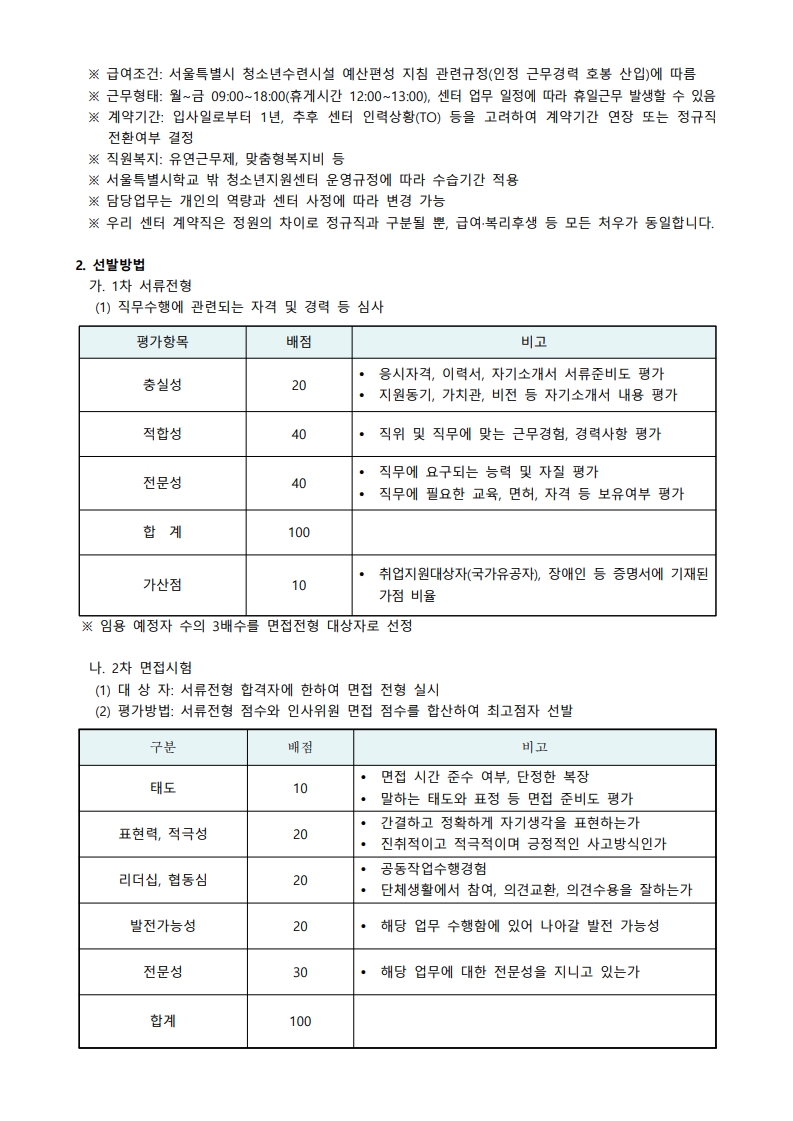 2024 서울특별시학교밖청소년지원센터 직원(계약직) 채용 최종합격자 발표 안내(2024.10.23.면접건)