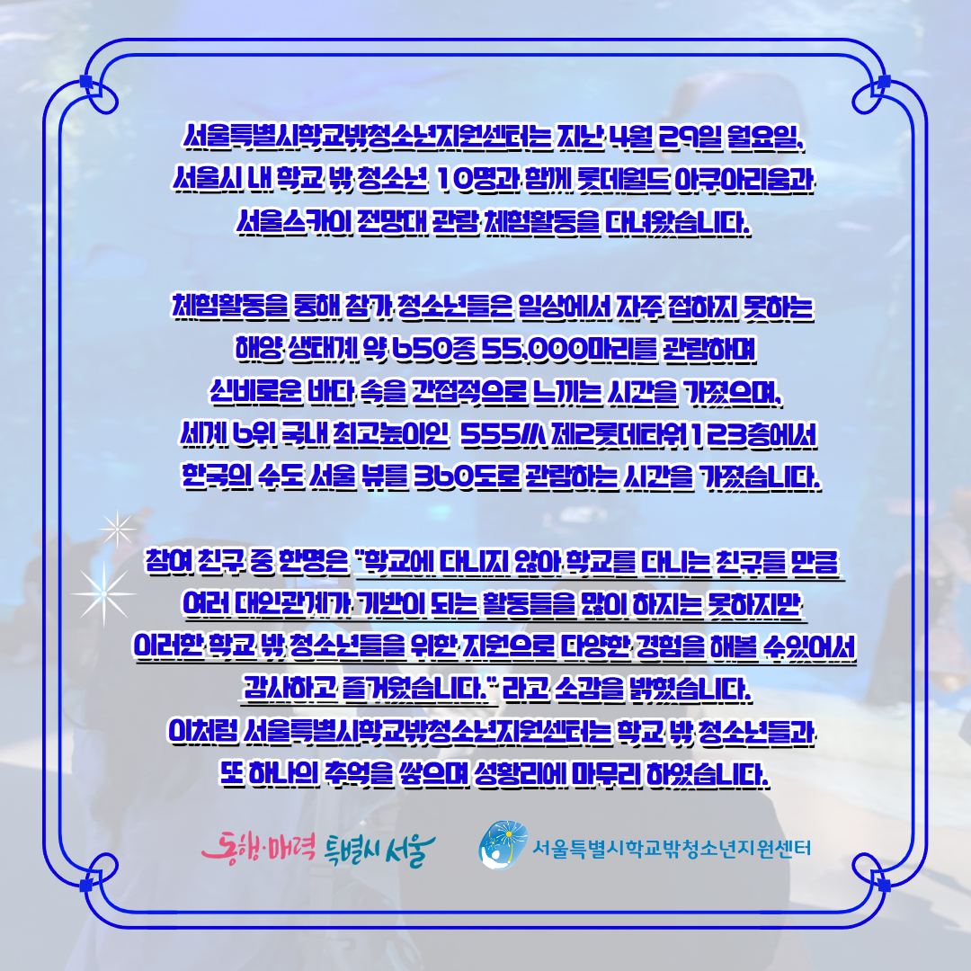 활동소식 HOME > 커뮤니티 > 센터 소식 > 활동소식 링크공유 프린트 2024년 위기청소년지원사업 체험활동 1회기 진행 관리자 0 238 0 0 Print 글주소 05-13 0 0 스크랩 목록 이전글 다음글