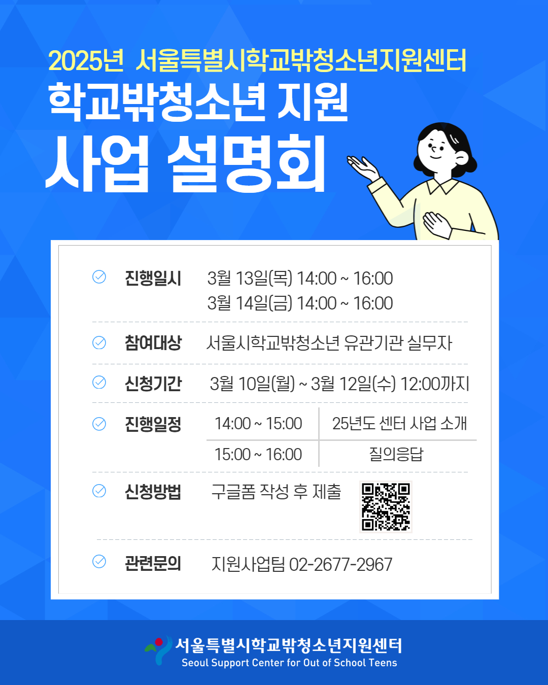 2025년 서울특별시학교밖청소년지원센터 사업설명회 안내