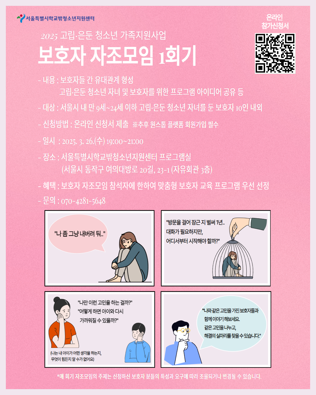 2025 고립은둔 청소년 가족지원사업 보호자 자조모임 1회기 신청자 모집안내