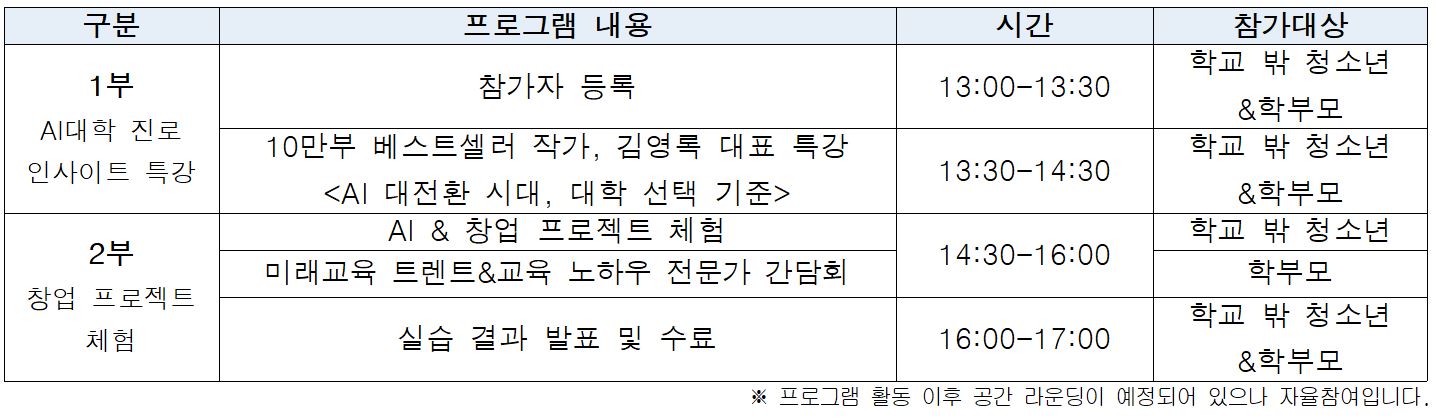 2025년 'AI 진로특강&진로체험' 프로그램 참가자 모집의 건