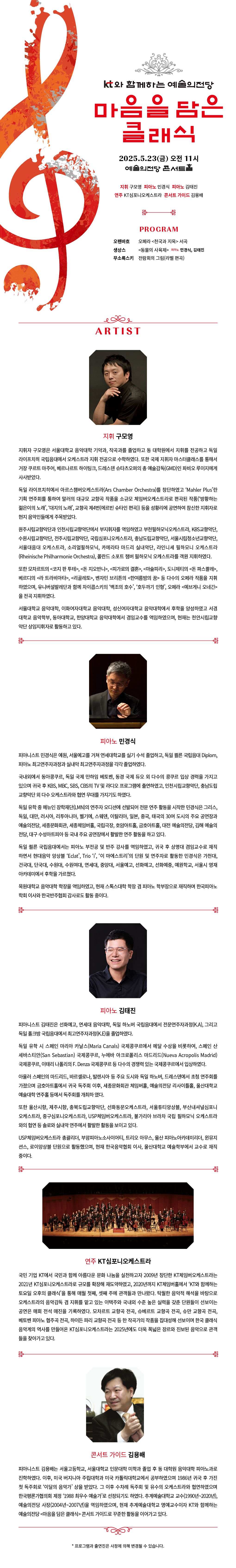 5/23(금) 11:00-13:00 예술의 전당 <마음을 담은 클래식> 20매
