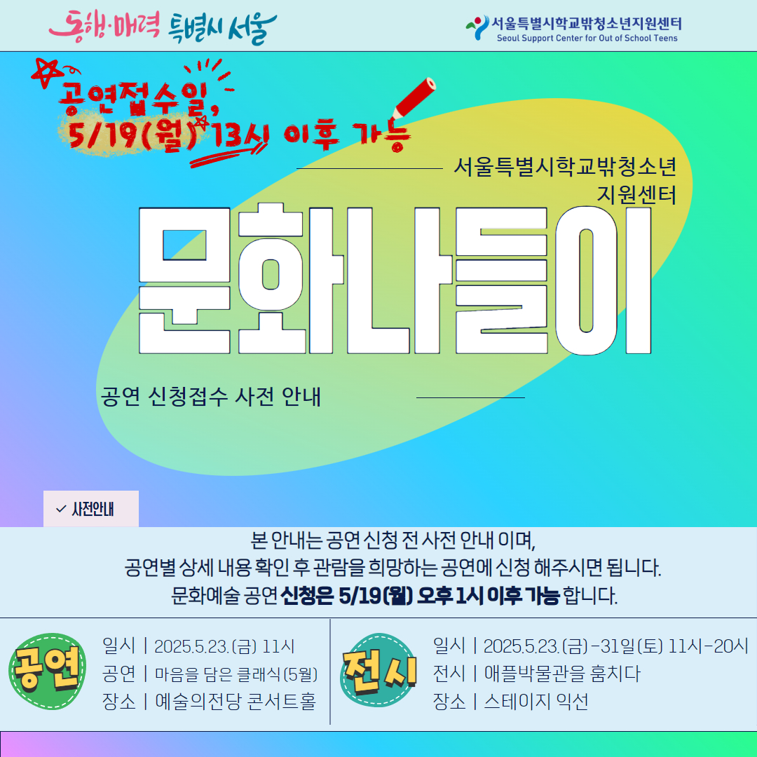 <사전알림> 5월 3차 문화예술공연 신청 사전안내