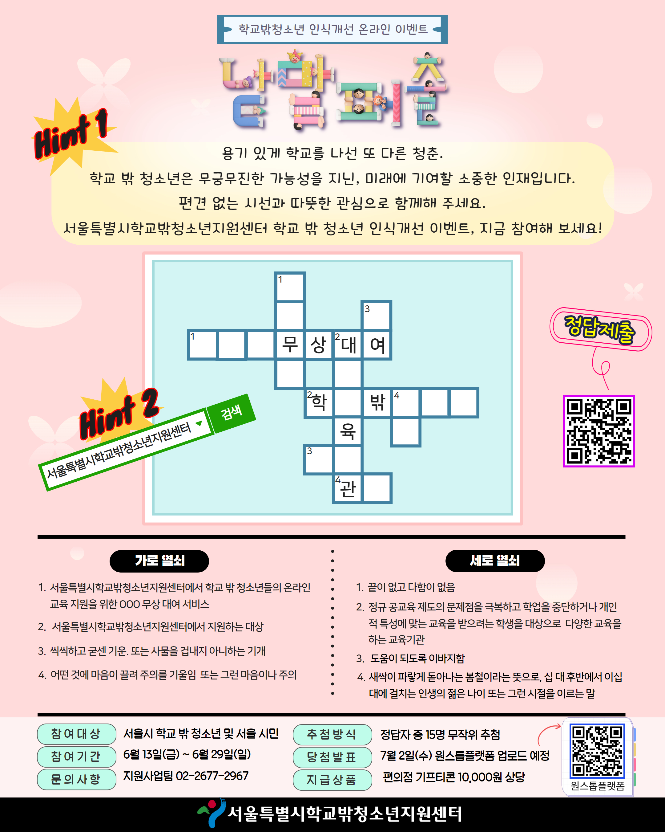2025년 학교 밖 청소년 인식개선 온라인 이벤트 2차