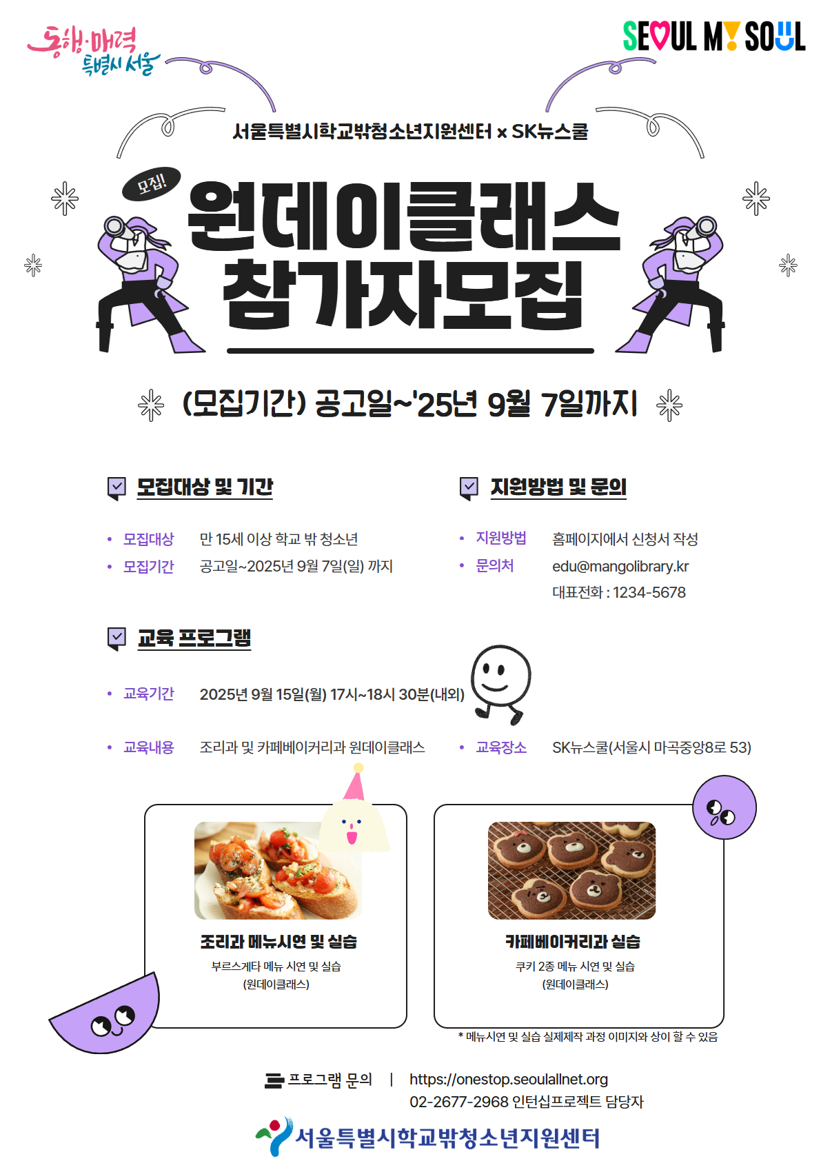 9월 진로체험으로 SK뉴스쿨에서 조리과와 카페베이커리과에서 원데이클래스 진행합니다.