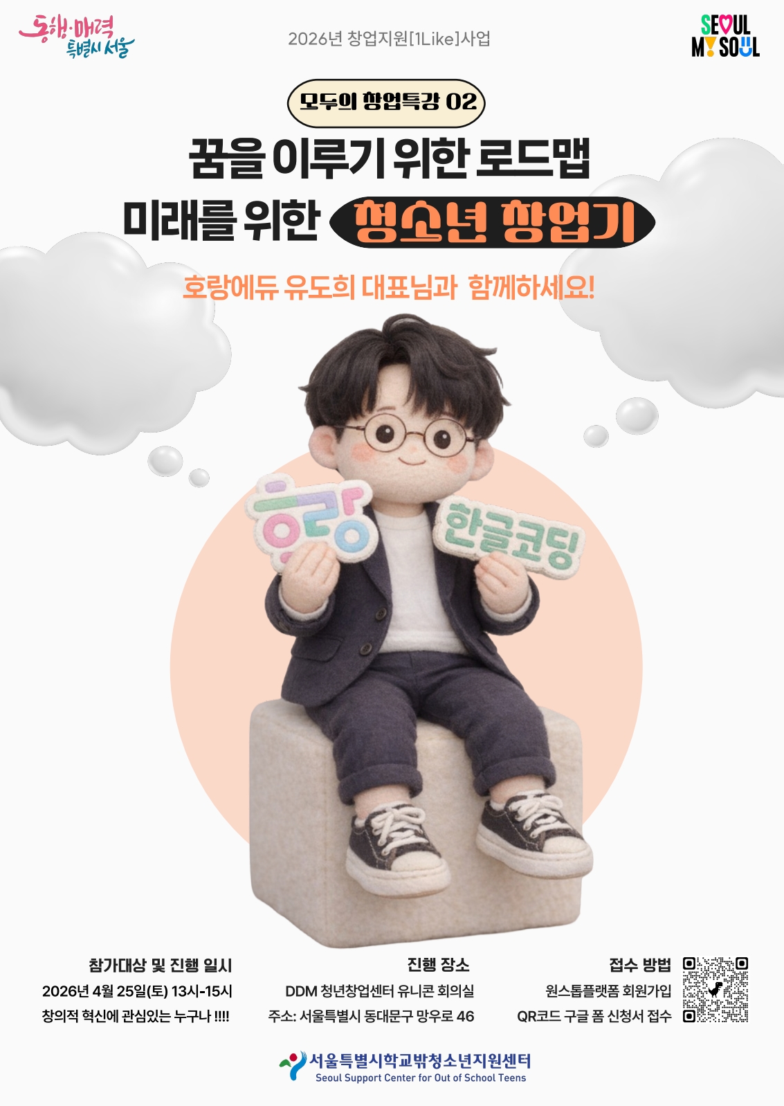 창업진흥원 청소년 비즈쿨 운영기관으로서 호랑에듀 대표님과 함께 창의적 사고와 혁신에 관심있는 학교 밖 청소년과 보호자들을 위한 모두의 창업특강을 운영하고자 합니다 !